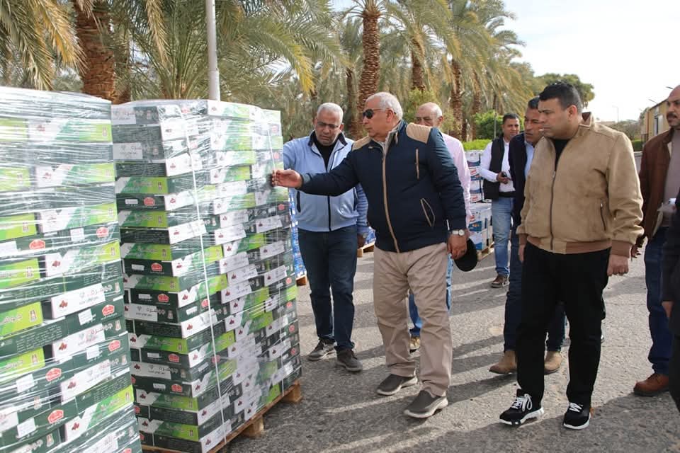 محافظ الوادي الجديد يتفقد تجهيزات قوافل المساعدات المتجهة إلى قطاع غزة