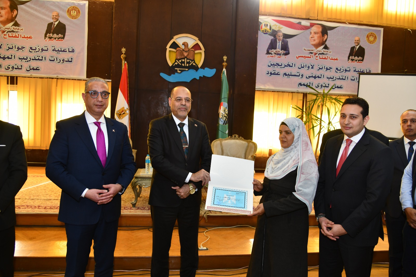 وزير العمل ومحافظ الفيوم يكرمان أوائل خريجات التدريب المهني