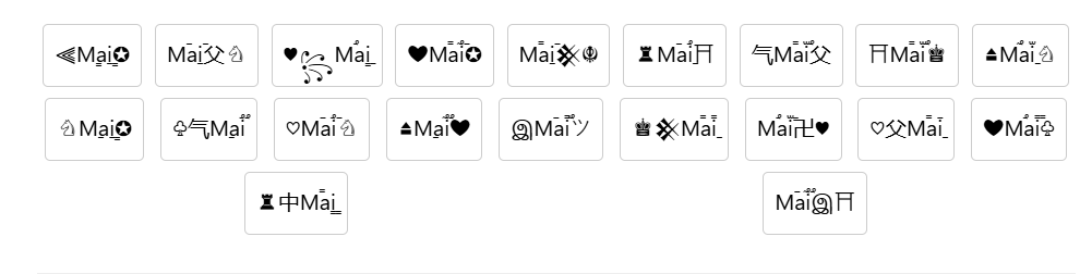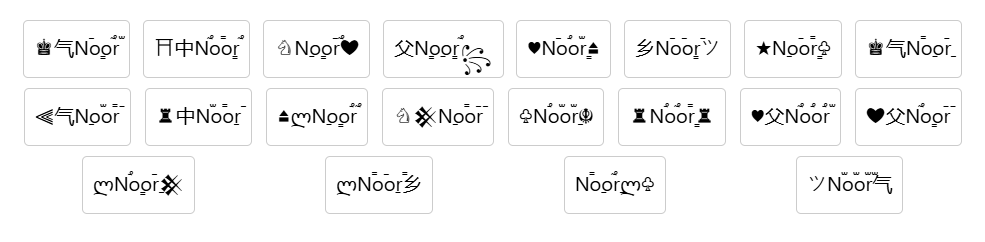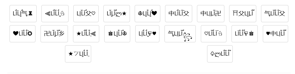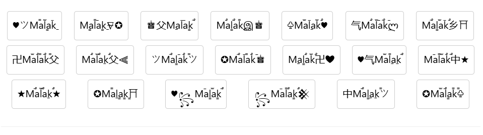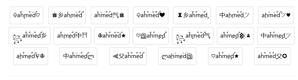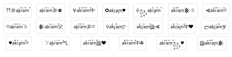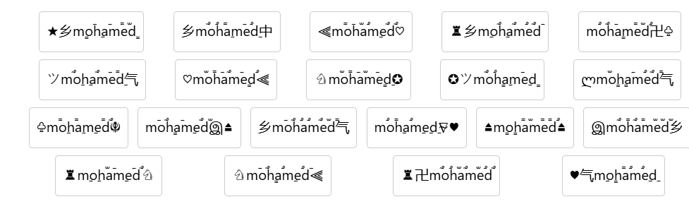 وهناك أيضا مواقع توفر مجموعة كبيرة من الرموز والأحرف الخاصة التي يمكن استخدامها لتزيين الاسم، حيث يتم نسخ هذه الرموز ولصقها في المكان المرغوب، ومن هذه المواقع على سبيل المثال: Copy and Paste Symbols، وموقع FSymbols