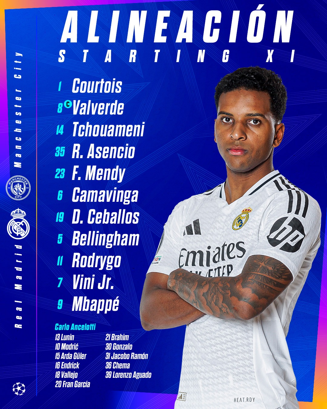 - في خط الهجوم: رودريجو - كيليان مبابي - فينسيوس جونيور.