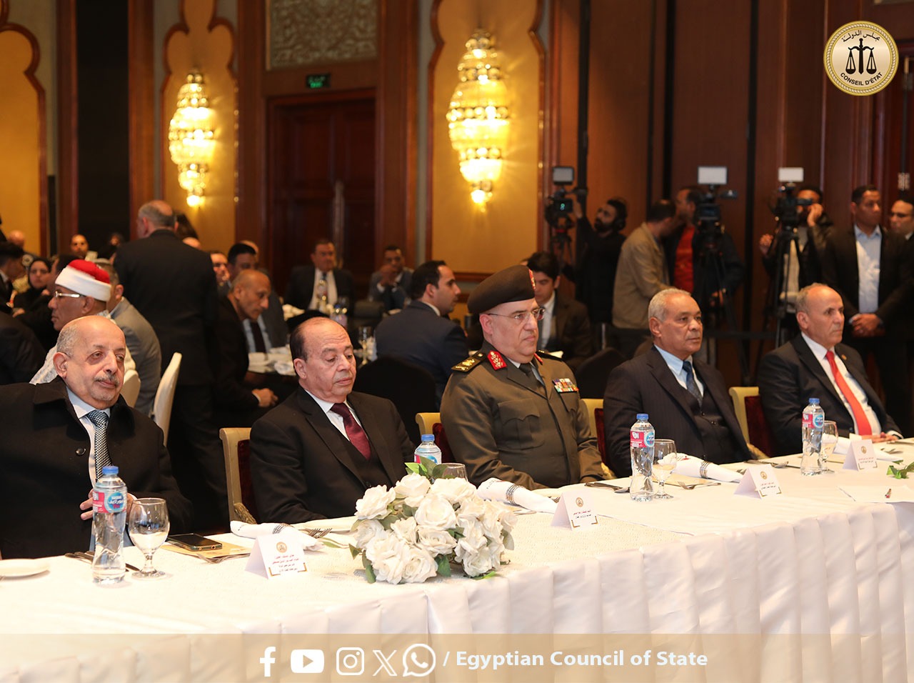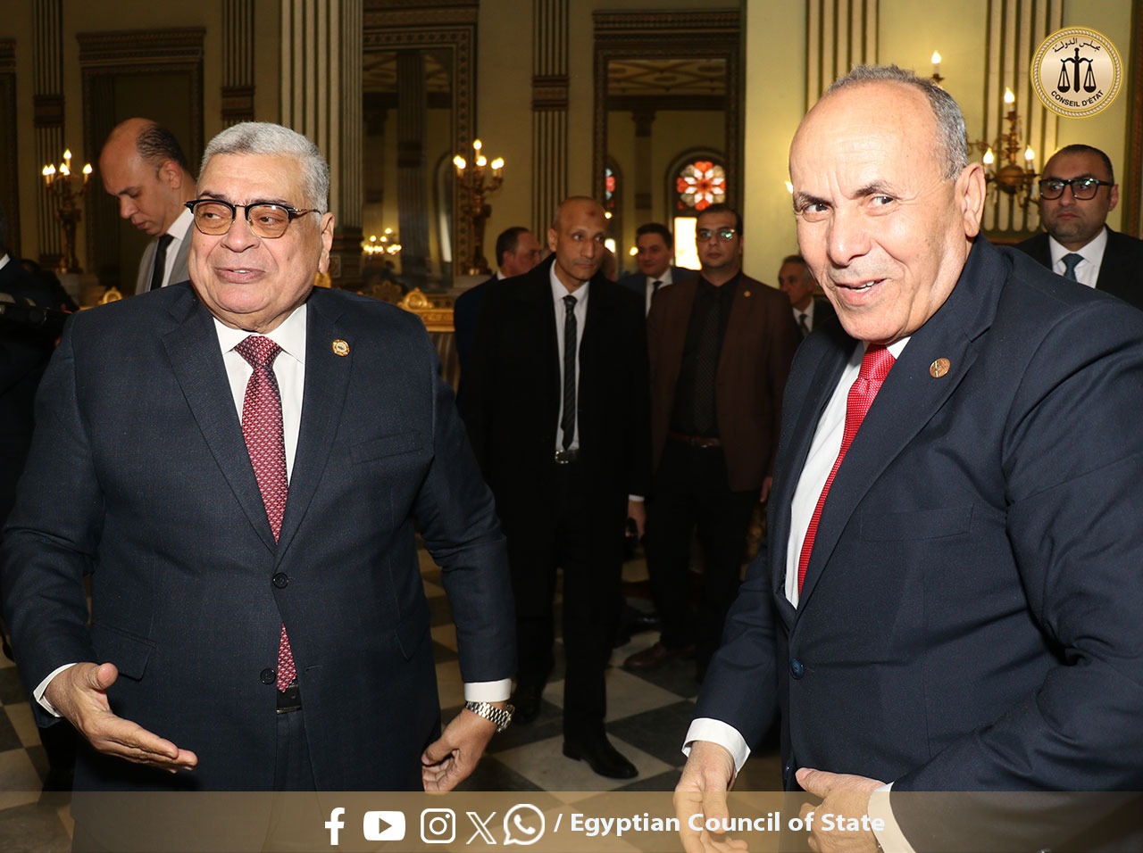 حيث نظم مجلس الدولة احتفالية بعنوان “يوم الوفاء والتميز” بفندق ماريوت في الزمالك. شهد الحفل إطلاق الموقع الإلكتروني الرسمي لمجلس الدولة، وتكريم 17 من القضاة والقاضيات الأكثر تميزًا في الإنجاز خلال العام القضائي 2024/2025، بالإضافة إلى تكريم أسماء القضاة الراحلين الذين وافتهم المنية أثناء خدمتهم، تقديرًا لعطائهم للوطن ولمجلس الدولة. كما تم خلال الحفل تكريم عدد من الموظفين المتميزين بالمجلس.