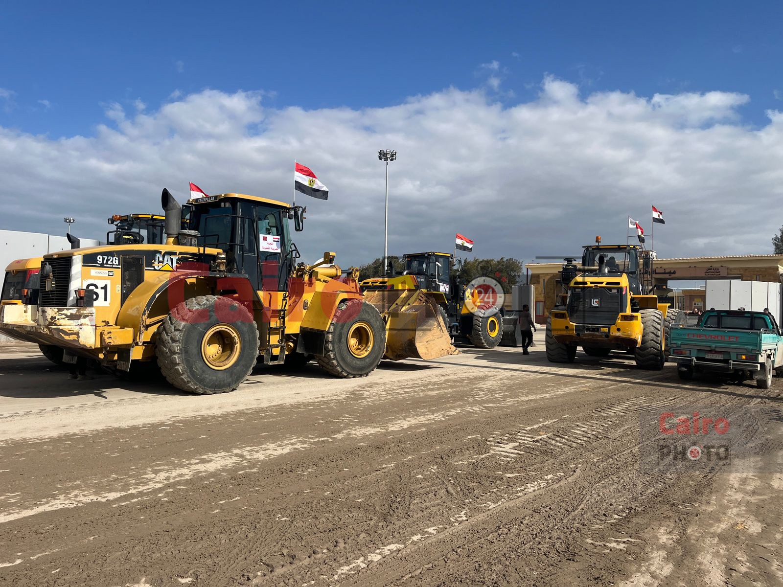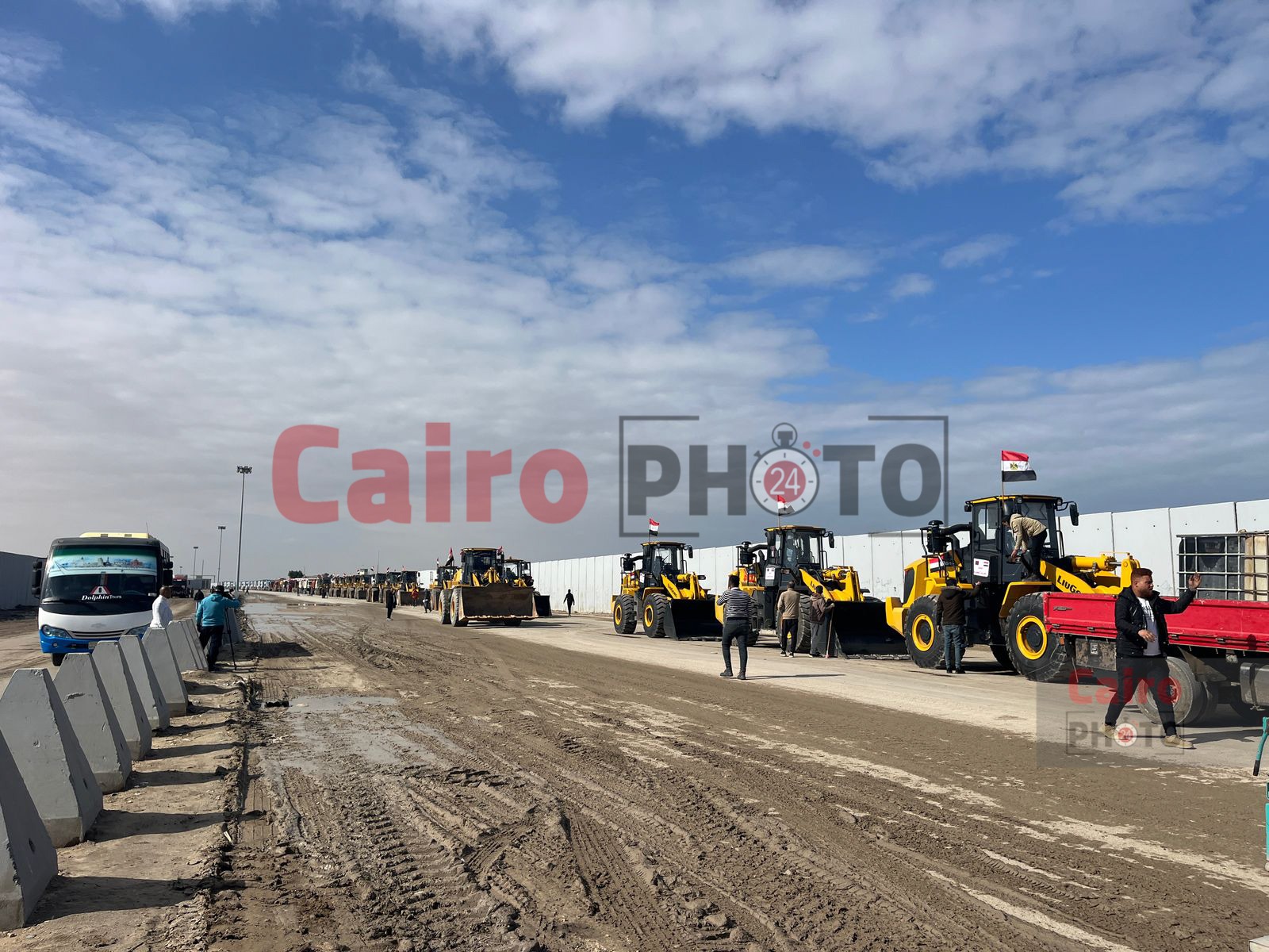 اصطفاف عشرات المعدات الثقيلة أمام الجانب المصري من معبر رفح تمهيدا لدخولها قطاع غزة│ صور