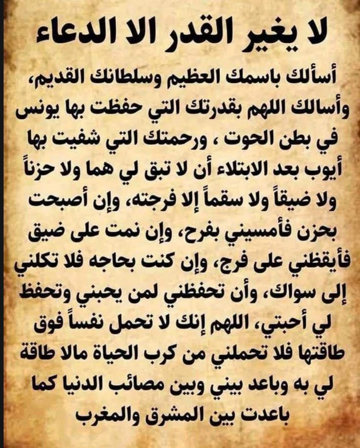 - اللهم إني عبدك وابن عبدك وابن أمتك، ناصيتي بيدك، ماضٍ في حكمك، عدل في قضاؤك، أسألك قضاء حاجتي وتيسير أمري. اللهم لا تجعل للعسر في أمري مجالًا، ولا للصعوبة في حاجتي سبيلًا، واقضها لي برحمتك يا أرحم الراحمين.