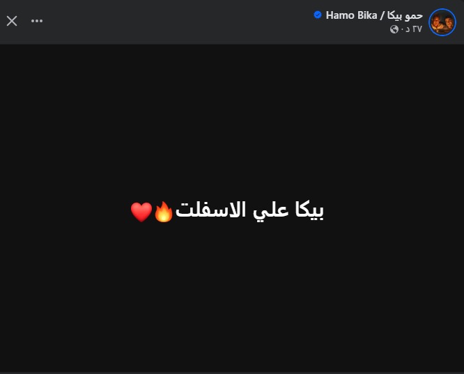 وكتب حمو بيكا في أول تعليق له عبر حسابه الشخصي بموقع التواصل الاجتماعي فيس بوك: بيكا على الأسفلت.