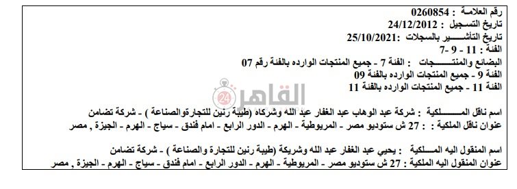 وتكشف سجلات جهاز تنمية التجار الداخلية، عن عمليات نقل الملكية للعلامات التجارية التي قام بها عبد الوهاب عبد الغفار أثناء سريان قرار إدراجه على قوائم الإرهاب.
