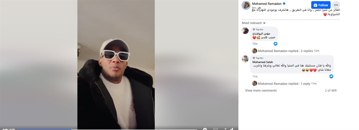 ونشر محمد رمضان، مقطع فيديو عبر حسابه الشخصي بموقع التواصل الاجتماعي فيسبوك، وقال: أكتر توقعات قريبة من الحقيقة كانت طالعة من شبرا مصر وخلال ساعة هكون هناك.. وانتظروا مسابقات تانية أزور فيها مناطق أكتر.