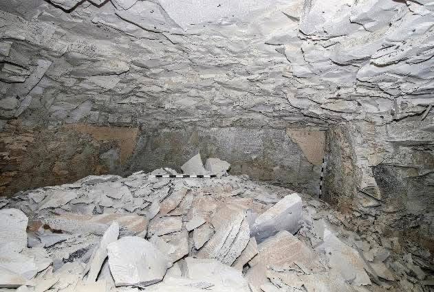 لكن حالة المقبرة كانت متدهورة بسبب السيول التي اجتاحت الموقع بعد وفاة الملك بفترة وجيزة، ما استدعى تدخل خبراء الترميم لإعادة تثبيت القطع المتساقطة من الملاط، في محاولة للحفاظ على هذا الكشف التاريخي.