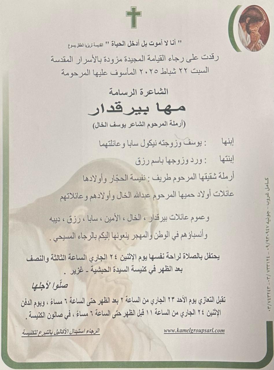 رحلت عن عالمنا منذ قليل، والدة الممثل يوسف الخال وحماة الفنانة نيكول سابا.