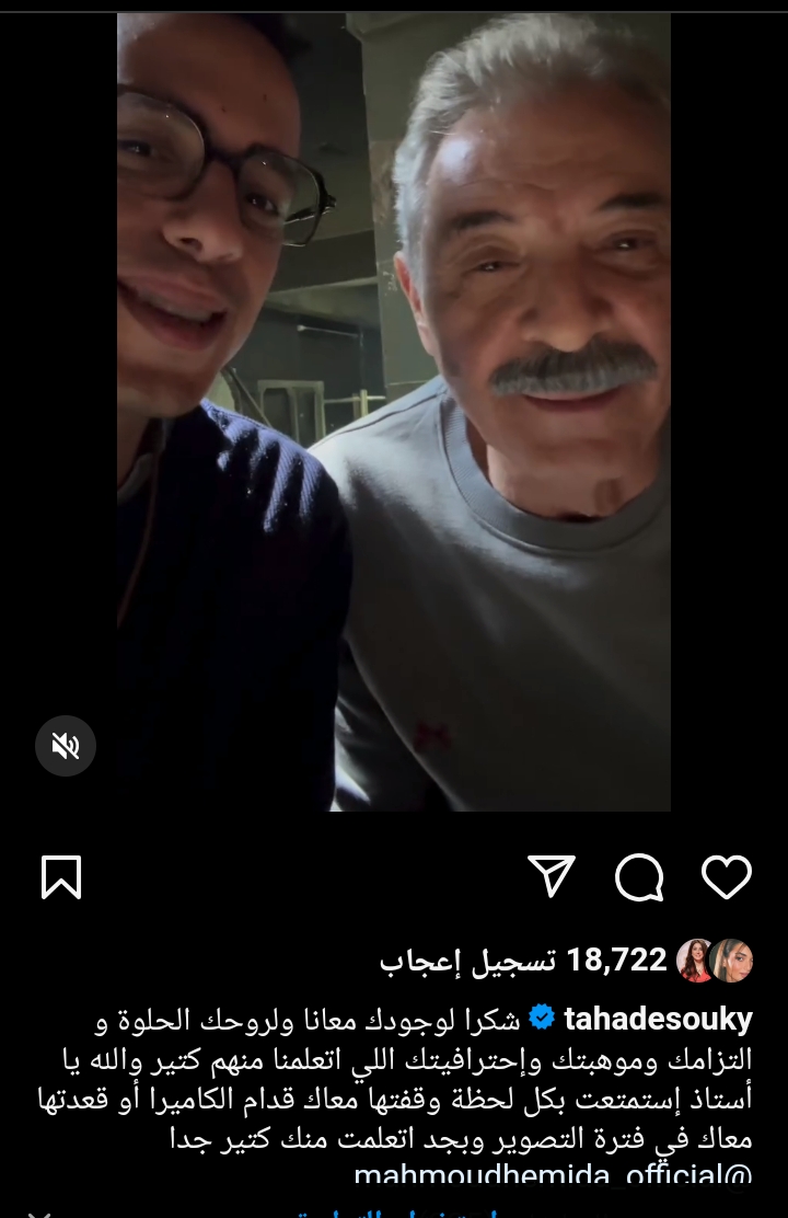 ومن جانبه علق طه دسوقي على الفيديو قائلا: شكرا لوجودك معانا ولروحك الحلوة والتزامك وموهبتك واحترافيتك اللي اتعلمنا منها كتير، استمتعت بكل لحظة وقفتها معاك قدام الكاميرا، وبجد اتعلمت منك كتير.