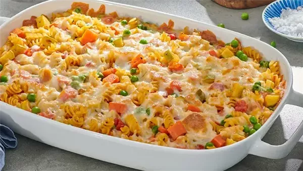 - أنزلي بالمكرونة المسلوقة، وقومي بتقليبها جيدا، ثم أضيفي قطع من الجبنة.