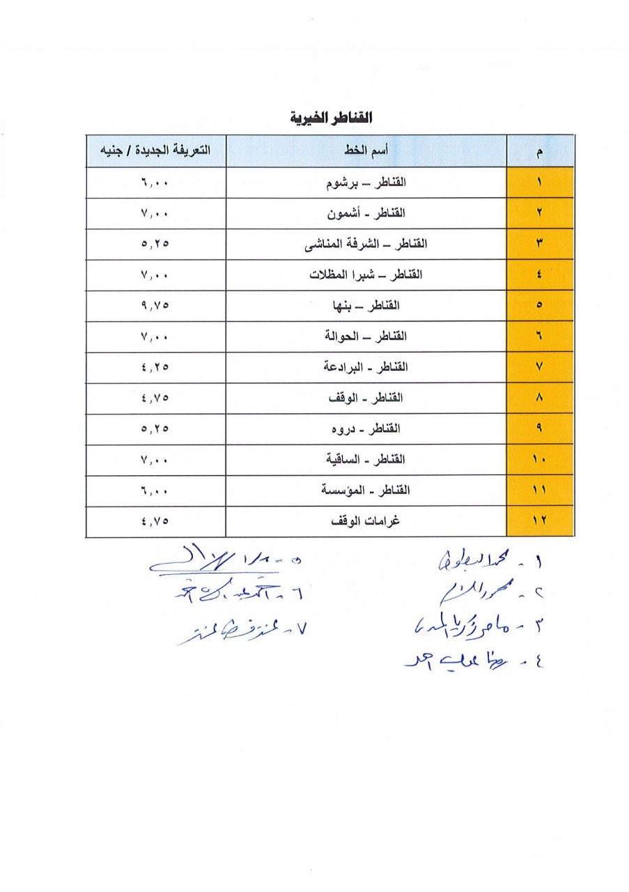أصدر اليوم المهندس أيمن عطية محافظ القليوبية قرارا رقم 484 لسنة 2025 الخاص بتعديل التعريفة الجديدة والمقررة لركوب سيارات الأجرة والسرفيس بدائرة المحافظة، وذلك على أثر زيادة أسعار البنزين والسولار الذي أقره المهندس وزير البترول والثروة المعدنية.