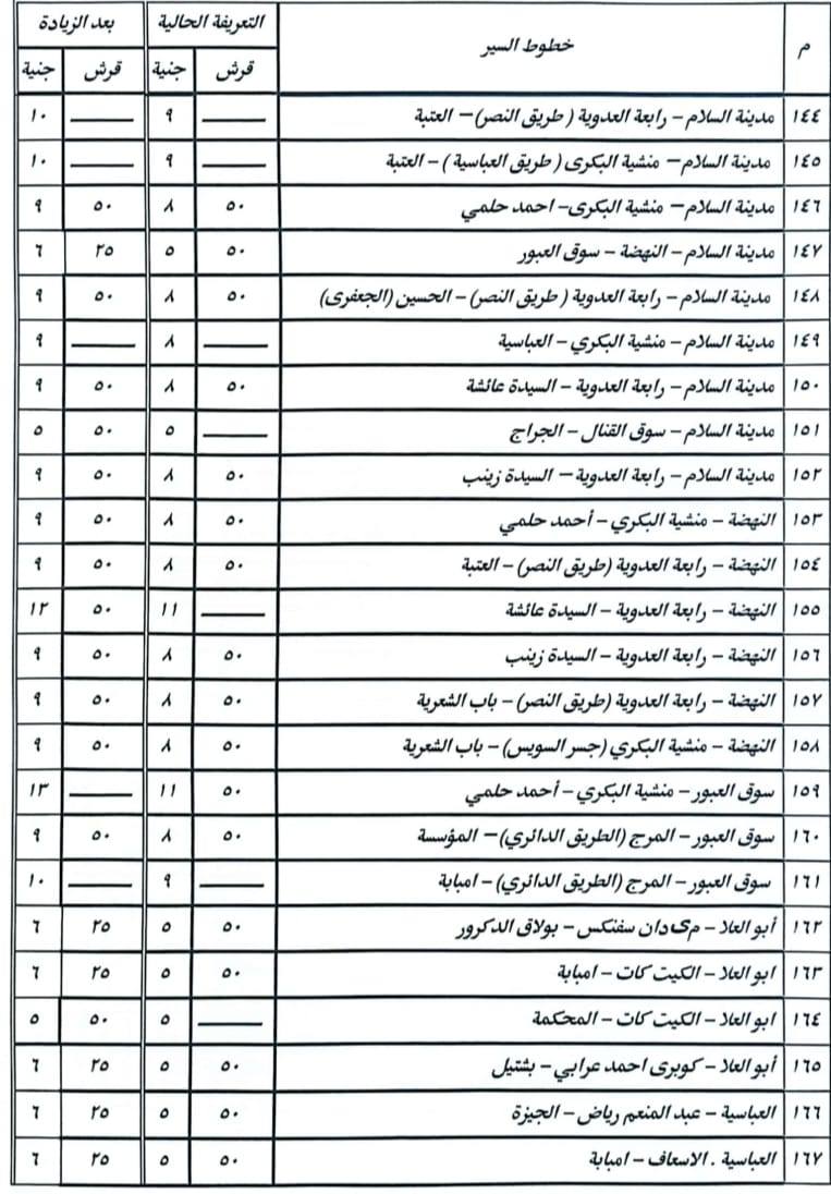 في ضوء صدور قرار لجنة تسعير المنتجات البترولية بتعديل سعر البنزين والسولار، قامت محافظة القاهرة بتعديل تعريفة ركوب سيارات السرفيس، والنقل العام، والنقل الجماعي، والأقاليم، والتاكسي الأبيض.