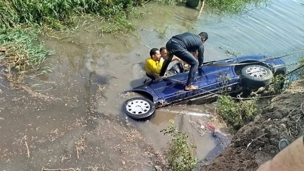 انقلاب سيارة في ترعة بالبحيرة.. والأهالي ينقذون قائدها من الموت