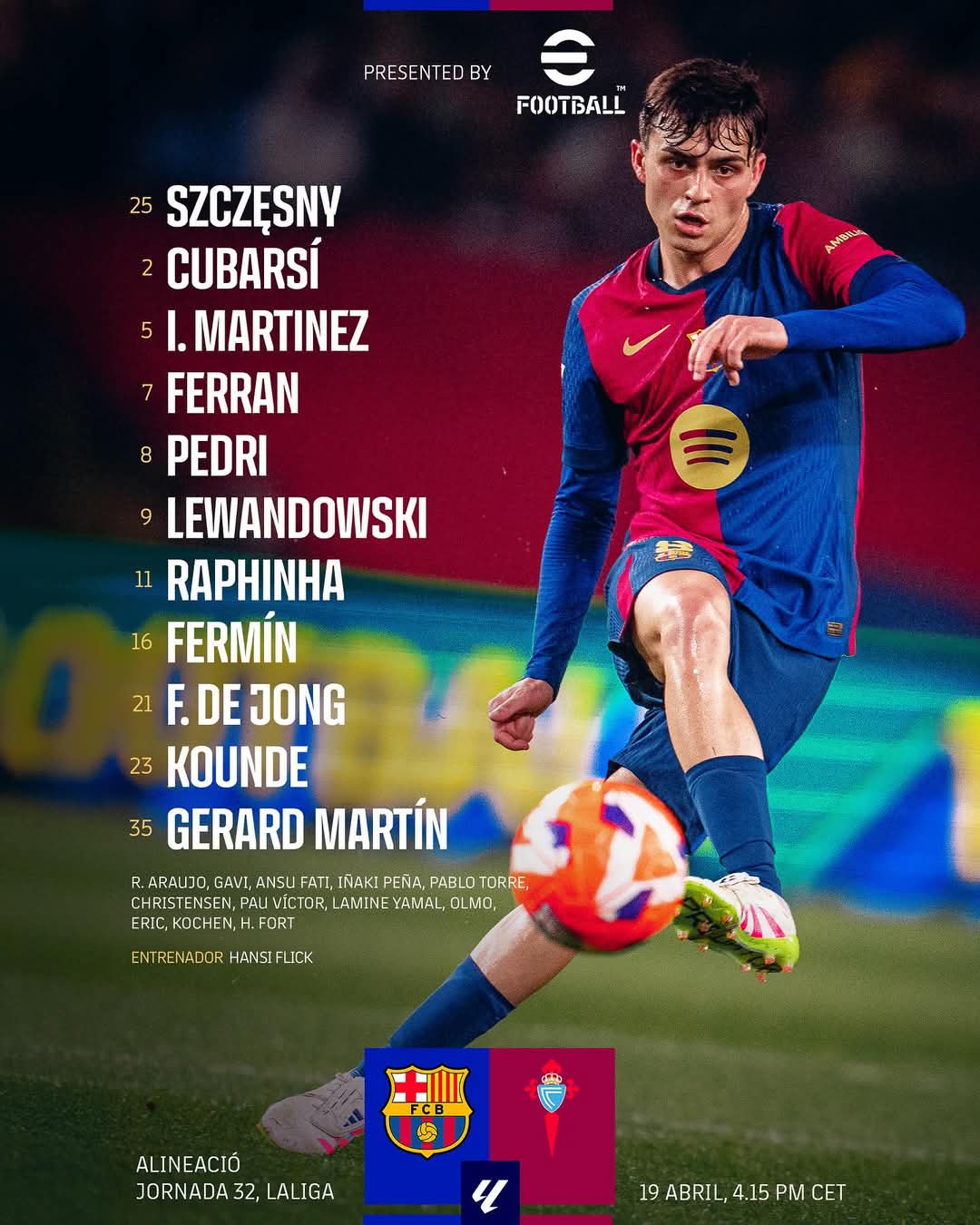 وجاء تشكيل برشلونة لمواجهة سيلتا فيجو في الدوري الإسباني، كالتالي: