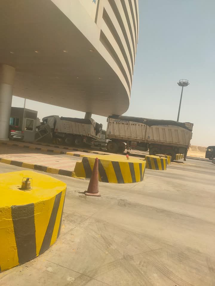 تصادم سيارة نقل بكارتة الطريق الأوسطي اتجاه أكتوبر| صور