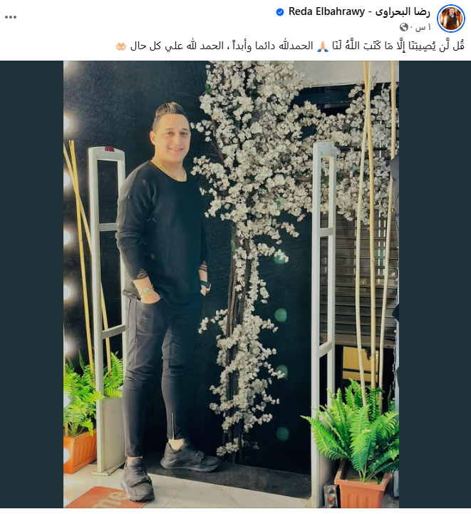 وكتب رضا البحراوي منشورا عبر حسابه الشخصي بمواقع التواصل الاجتماعي فيس بوك، قال فيه: قُل لَّن يُصِيبَنَا إِلَّا مَا كَتَبَ اللَّه لنا الحمد لله دائما وأبدًا، الحمد لله على كل حال.