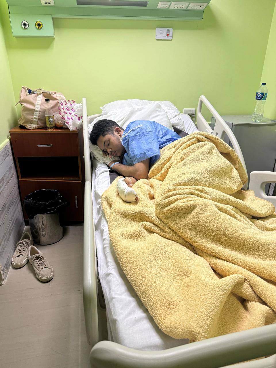 وأكدت نورة الشيخ أن زياد نقل على الفور إلى المستشفى، وخضع لعملية جراحية استمرت 3 ساعات لمحاولة إنقاذ أصابعه المقطوعة، وجرى بالفعل خياطة اثنين من الأصابع وإعادة توصيل الأوتار، موضحة أن التقرير الطبي يثبت إصابته بقطع في الأصابع والأوتار نتيجة الضرب بآلة حادة.