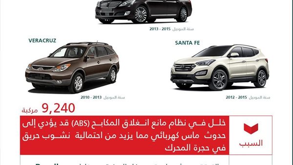 التجارة السعودية: استدعاء 9000 سيارة هيونداي لخلل في الفرامل