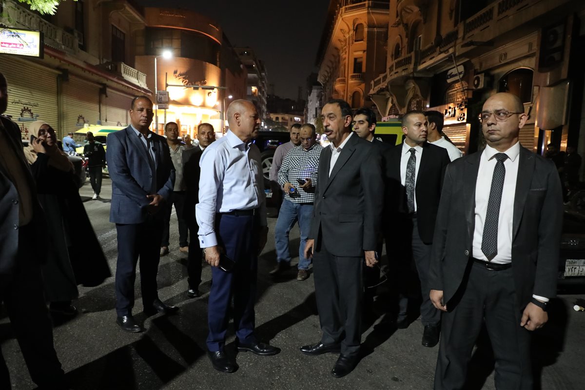 محافظ القاهرة يشرف على عمليات إطفاء حريق عقار بوسط البلد