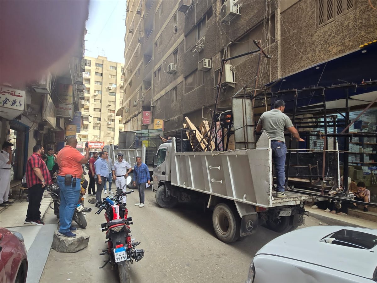 وأضاف البيان بالإضافة إلى رفع الباعة المفترشين للطريق العام وفروشات المقاهي بالجزر الوسطى بالطوابق واستاندات المعروضات التابعة لهم وذلك بمتابعة من طه عبد الصادق رئيس حي الهرم، ومصطفى عبد العليم نائب القطاع وبالتعاون مع شرطة المرافق.