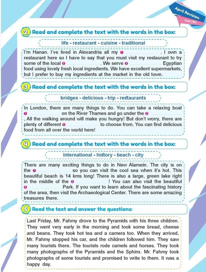 مراجعة اللغة الإنجليزية للصف الخامس الابتدائي الترم الثاني