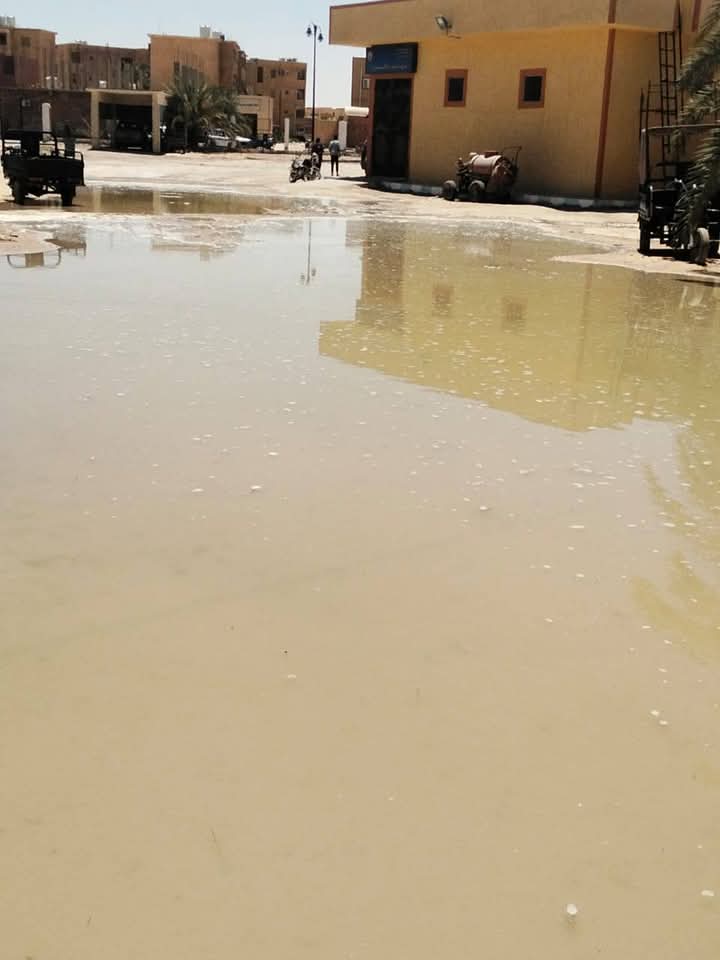 شهد محيط الوحدة الصحية في سيوة بمحافظة مطروح؛ حدوث كسر مفاجئ في ماسورة مياه، أدت إلى غرق الشارع.