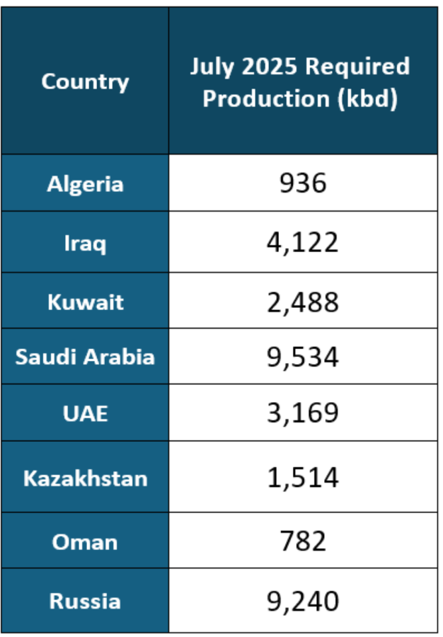 وأعلنت المنظمة في بيان، أنه في ضوء التوقعات الاقتصادية العالمية المستقرة وأساسيات السوق السليمة حاليًا، كما ينعكس ذلك في انخفاض مخزونات النفط، ووفقًا للقرار المتفق عليه في 5 ديسمبر 2024 لبدء العودة التدريجية والمرنة للتعديلات الطوعية البالغة 2.2 مليون برميل يوميًا بدءًا من 1 أبريل 2025، ستُجري الدول الثماني المشاركة تعديلًا للإنتاج قدره 411 ألف برميل يوميًا في يوليو 2025 من مستوى الإنتاج المطلوب في يونيو 2025. ويعادل هذا ثلاث زيادات شهرية كما هو مفصل في الجدول أدناه. ويمكن إيقاف هذه الزيادات التدريجية مؤقتًا أو إلغاؤها وفقًا لتطورات ظروف السوق. وستسمح هذه المرونة للمجموعة بمواصلة دعم استقرار سوق النفط.