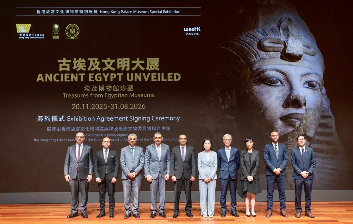 وقّع المجلس الأعلى للآثار، اتفاقية تعاون مشترك مع متحف قصر هونج كونج، لتنظيم معرض أثري دولي مؤقت تحت عنوان مصر القديمة تكشف عن نفسها.. كنوز من المتاحف المصرية، والمقرر انطلاقه في 18 نوفمبر 2025 ويستمر حتى 31 أغسطس 2026.