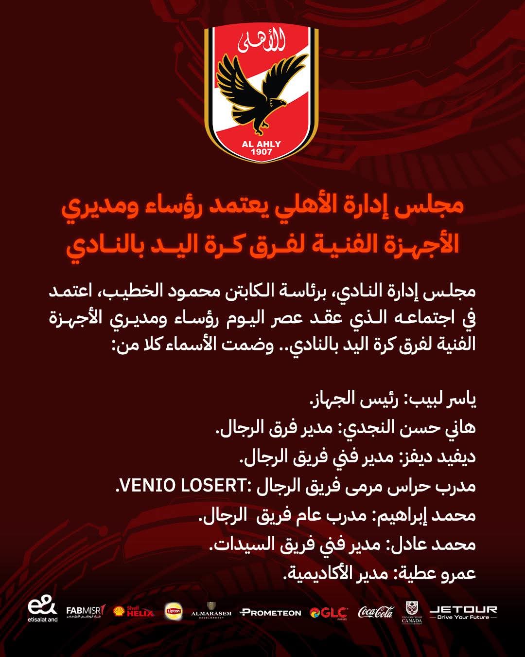 ويأتي هذا التشكيل ليعكس رؤية مجلس إدارة النادي في ضخ دماء جديدة تجمع بين الخبرات الدولية والكفاءات المحلية، مع الاستعانة بأسماء لها باع طويل في كرة اليد الأوروبية والعالمية، أبرزهم الإسباني ديفيد ديفز والكرواتي فينيو لوسيرت.