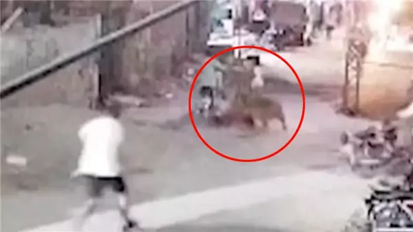أسد يهاجم أم وطفليها في الشارع وسط صدمة المارة في باكستان