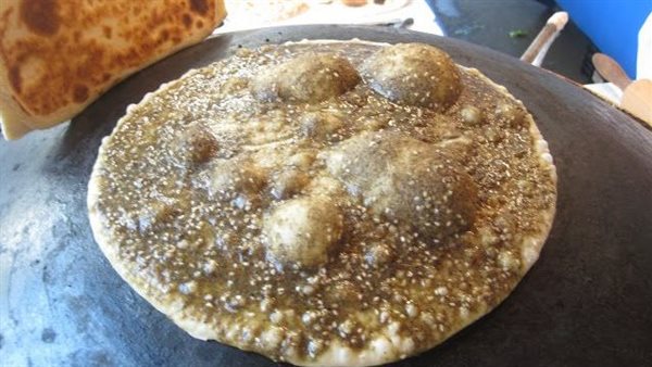- ضعي حشوة الزعتر وزيت الزيتون على المنقوشة، وافردي القطعة الثانية من العجينة وضعي فيها الحشوة المطلوبة زعتر او جبنة.