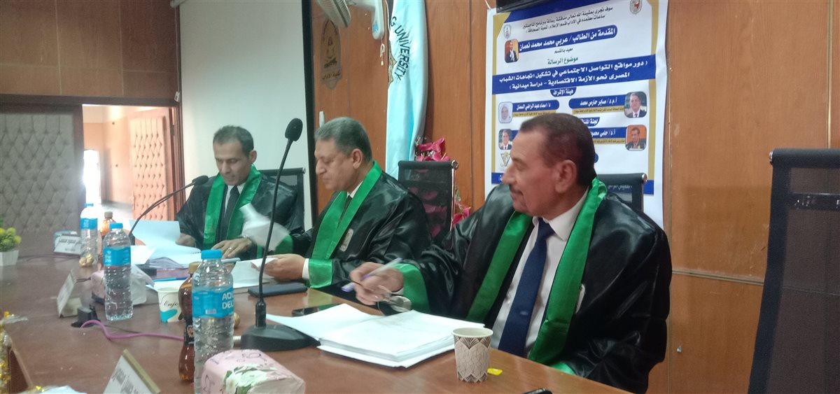 مناقشة رسالة ماجستير عن دور وسائل التواصل الاجتماعي نحو الأزمة الاقتصادية لأول معيد كفيف بجامعة سوهاج