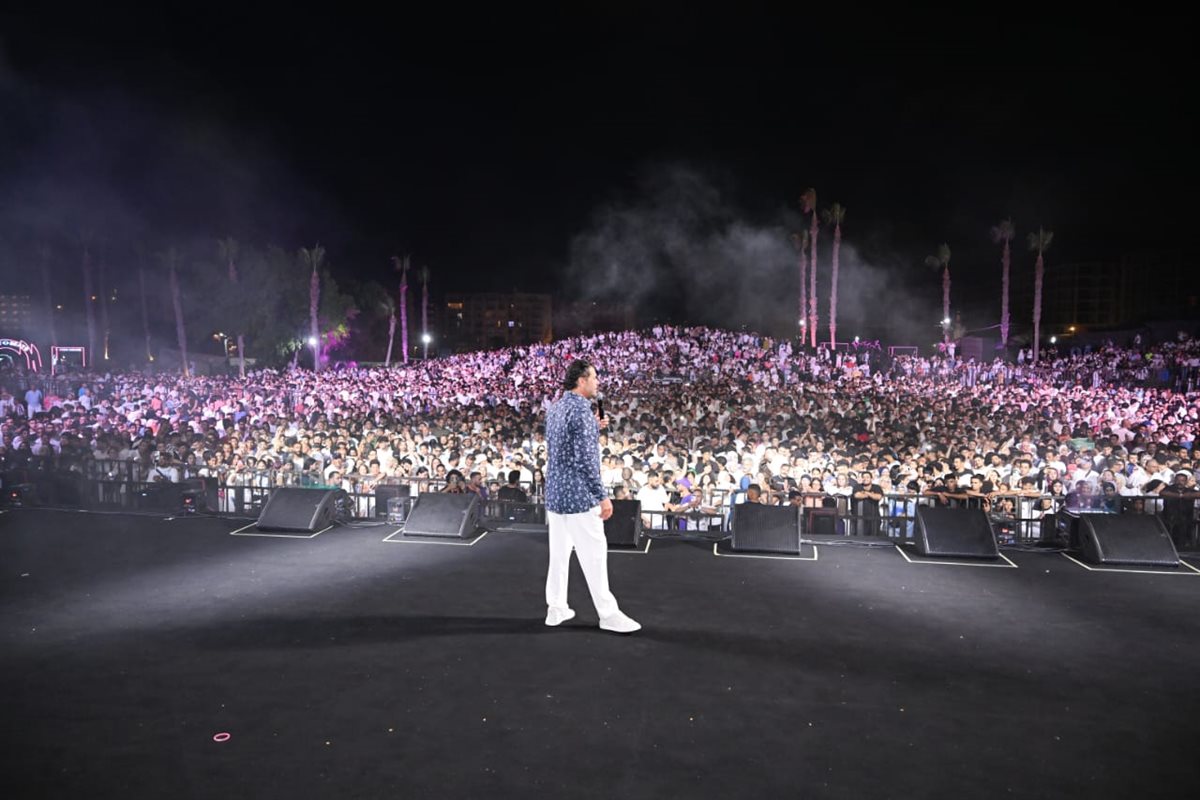 كما استقبل عدد من المعجبات من وسط الجمهور ممن تفاعلن بشدة مع اغانيه وشاركهن الغناء والتقاط الصور التذكارية علي المسرح.