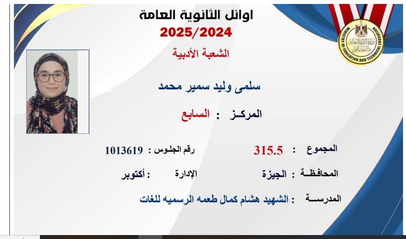 نتيجة الثانوية العامة 2025 بالاسم بجميع المحافظات