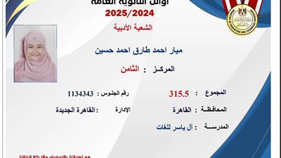 وجاءت قائمة أوائل الثانوية العامة 2025، كالتالي حيث شملت قائمة الأوائل طلابًا من مختلف المحافظات، مع تنوع ملحوظ في توزيع المدارس ما بين الرسمية والتجريبية والخاصة، ما يعكس اتساع قاعدة التفوق هذا العام، واستقرار نسبي في مستوى الأداء العام للطلاب، ومن المقرر أن تُتاح نتيجة الثانوية العامة 2025 كاملة عبر الموقع الرسمي لوزارة التربية والتعليم خلال الساعات الأولى من صباح غدٍ الأربعاء، على أن تُعلن داخل المدارس في نفس اليوم.