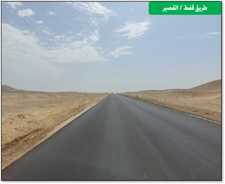 فيما يخص طريق قفط/القصير، الذي يبلغ طوله 172 كم وبعرض 8 أمتار، أفادت الهيئة بأنه يتم رفع كفاءته على مراحل. تم الانتهاء من رفع كفاءة 48 كم من جهة قفط، والجاري استكمال الباقي ضمن الخطة السنوية للهيئة.