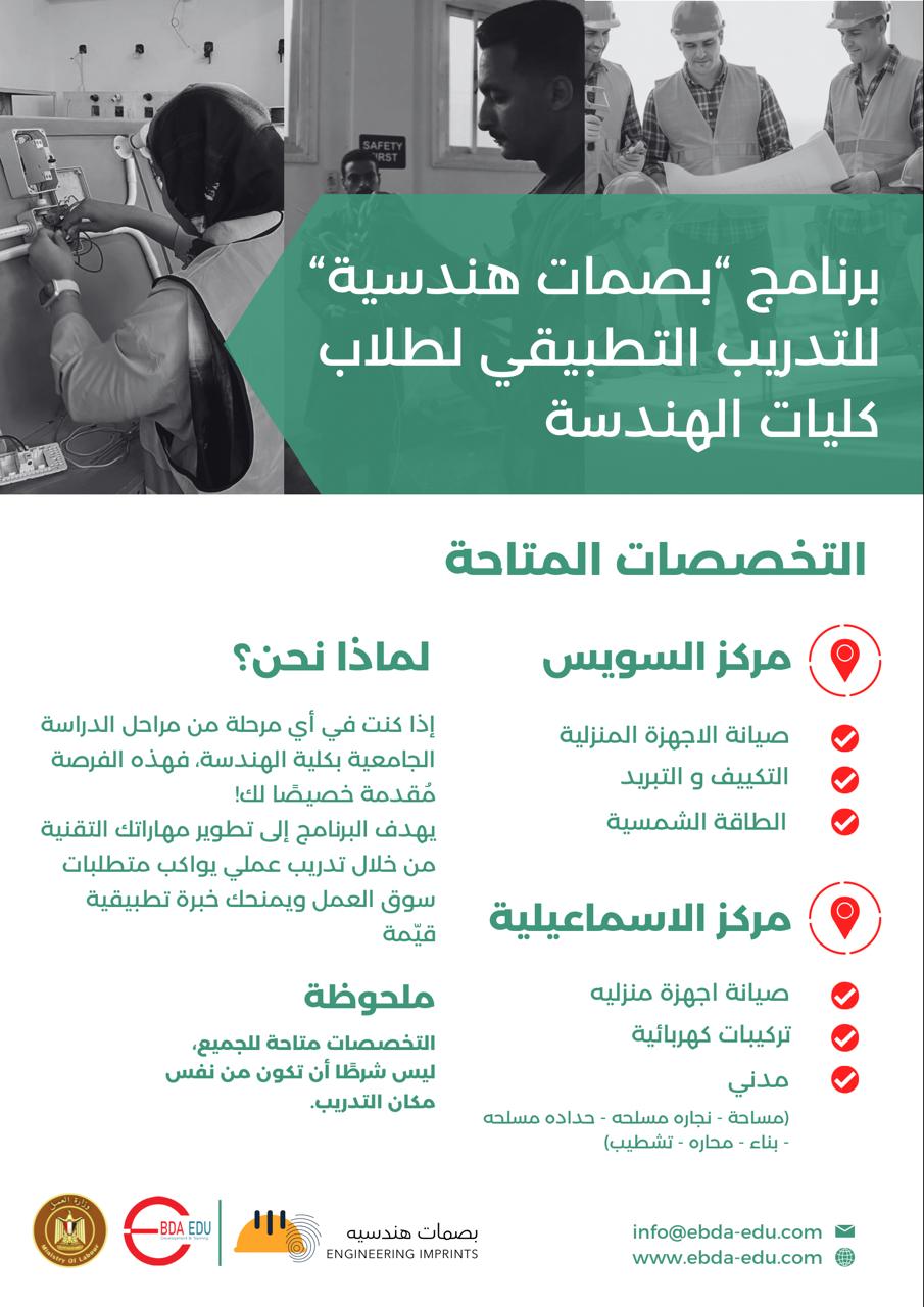فتح باب التقديم لطلاب الهندسة على برنامج بصمات هندسية للتدريب العملي في السويس والإسماعيلية