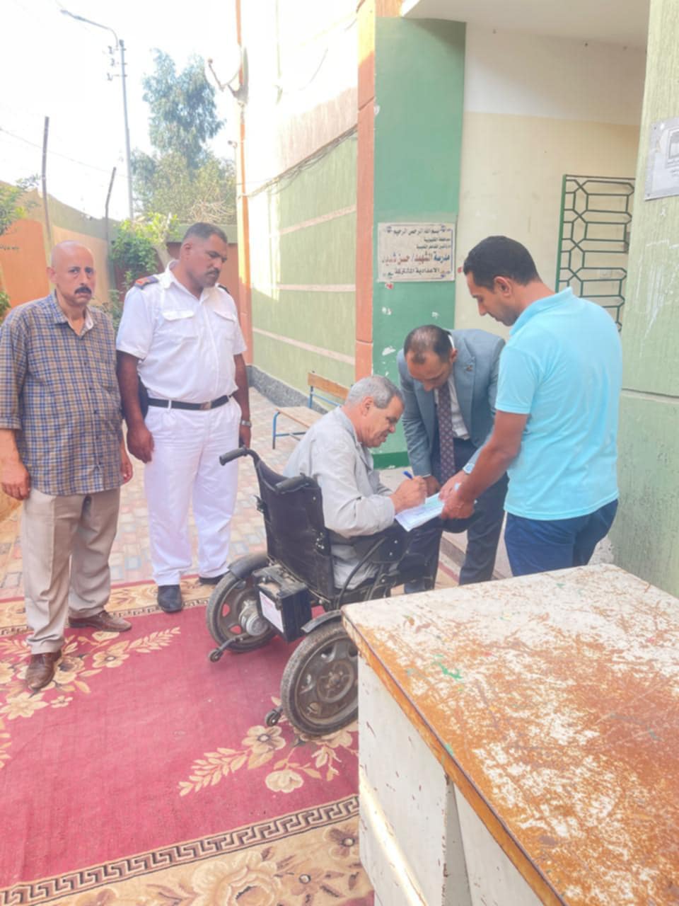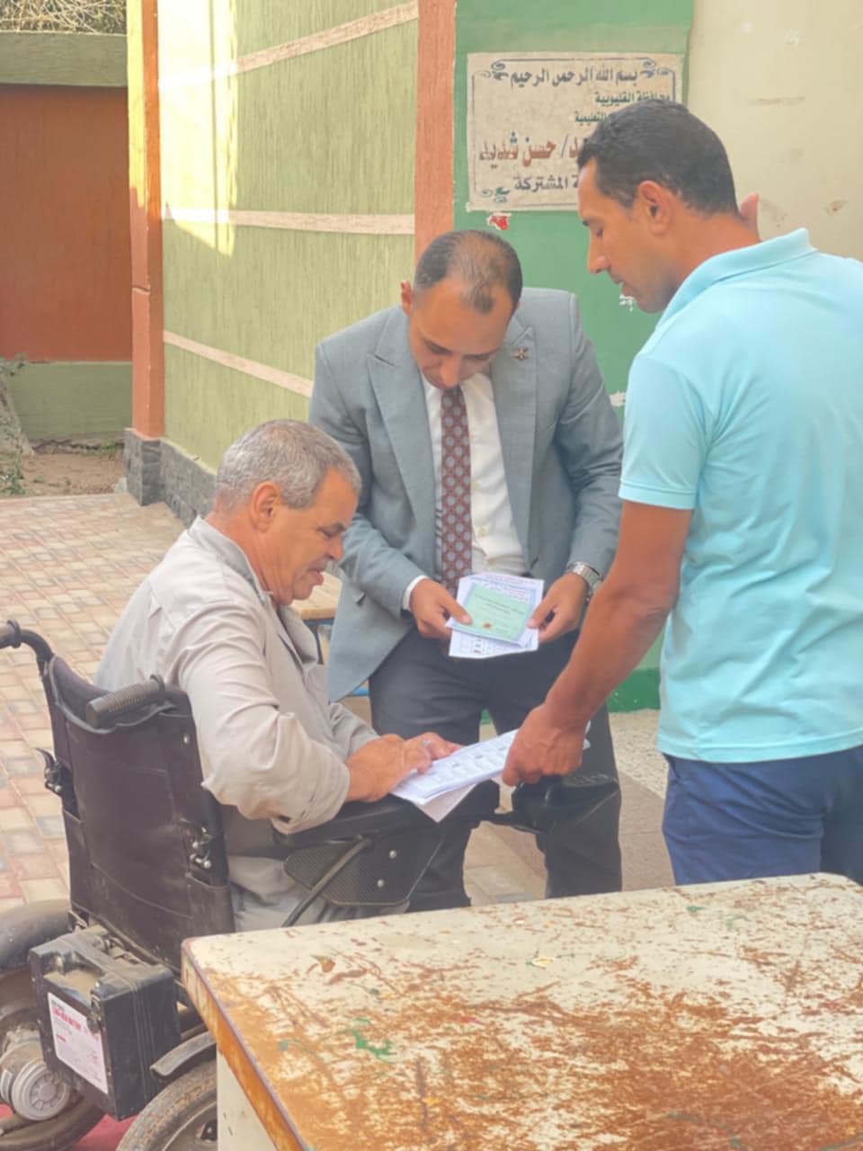 انتخابات الشيوخ.. رئيس لجنة مدرسة الشهيد حسن شديد بالقليوبية يقدّم المساعدة لكبار السن