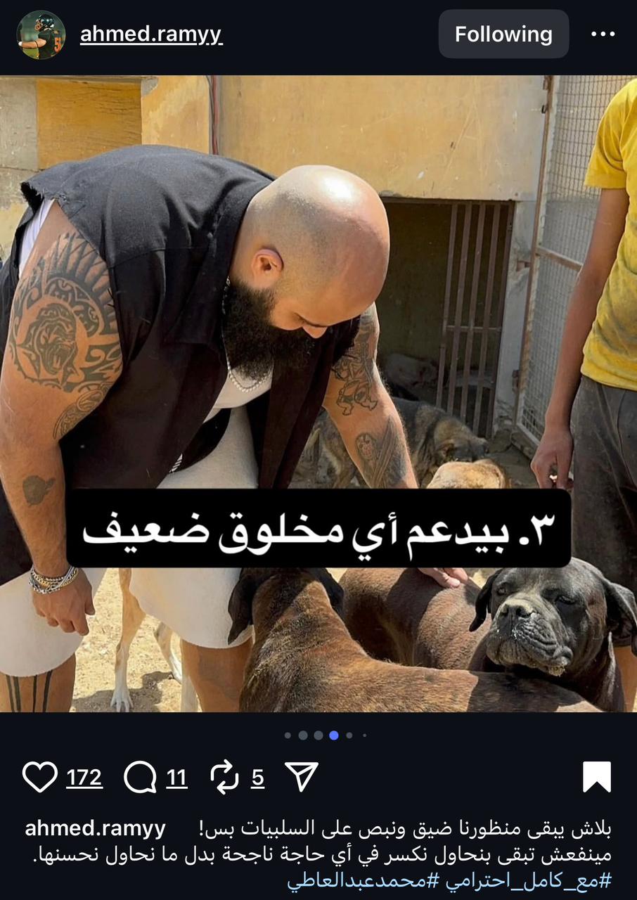 وكتب المخرج عمرو سلامة منشورًا متضامنًا: من تجربة شخصية محمد عبد العاطي من أكثر الناس اللي عرفتها على المستوي الشخصي مؤخرا وحبيتهم ودخلوا قلبي شخص طيب وجدع ودمه خفيف وابن حلال مصفي لغته اللي في ناس مش موافقة عليها وده حقهم، هي نفس لغته اللي شوفت بعيني مئات الشاب بيسلموا عليه وبيقولوله.. بنحبك علشان بتتكلم زينا.. من حق أي حد يكره طريقته، أو يتهمها بتشويه الذوق العام وقيم الأسرة أو يقاطعه، ويرفض يجوزه بنته يلعنه في تعليقات على النت لو شافه يقوله في وشه بكرهك، بس فرحة أي حد بنومته في الحجز علشان مجرد شوية كلام حتى لو خارج وفوقيه صوت بطة هي فرحة خسيسة.. ربنا يرجعه لحبايبه الكثير قوي بالسلامة.