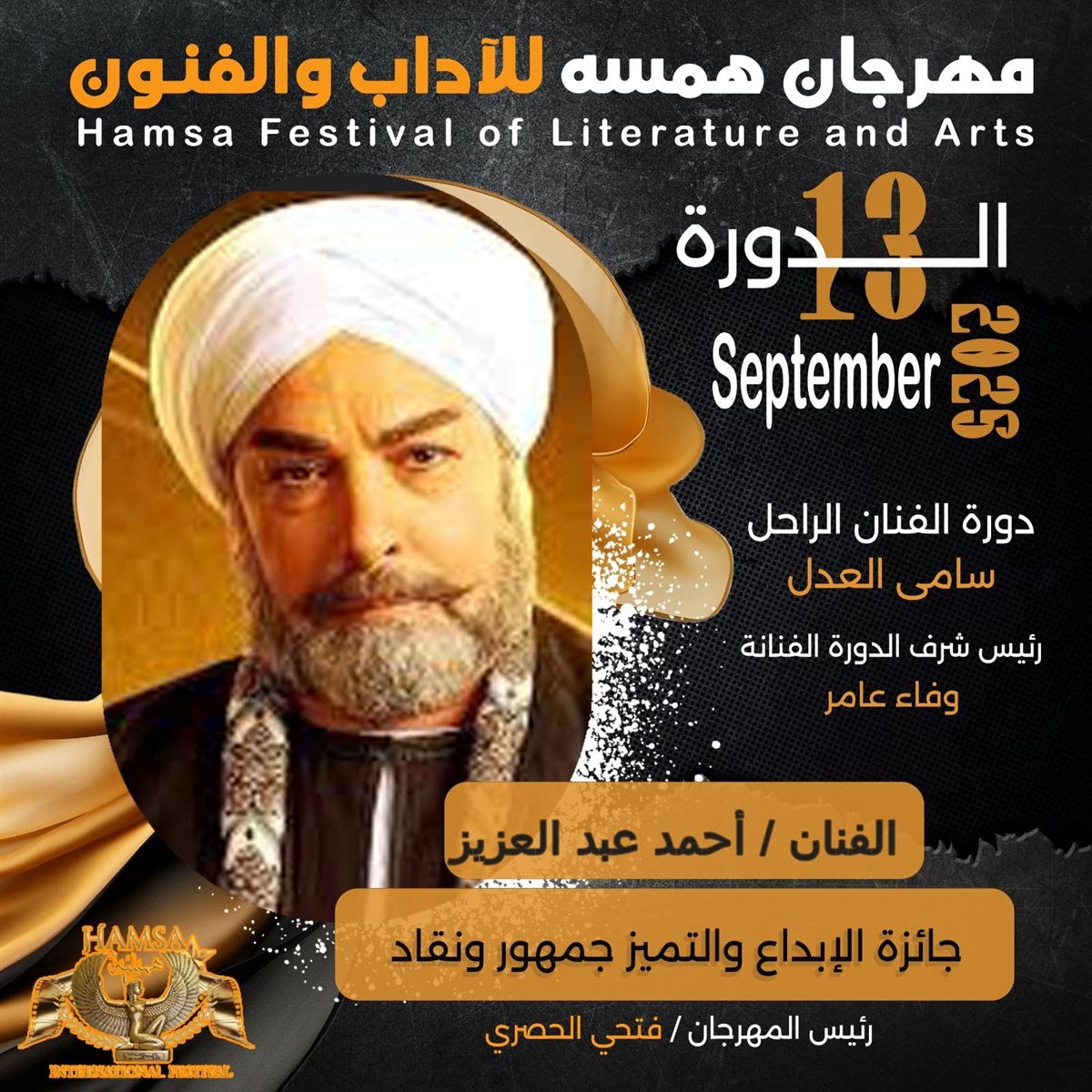 أحمد عبد العزيز يحصد جائزة الإبداع والتميز بمهرجان همسة للآداب والفنون في دورته الــ 13