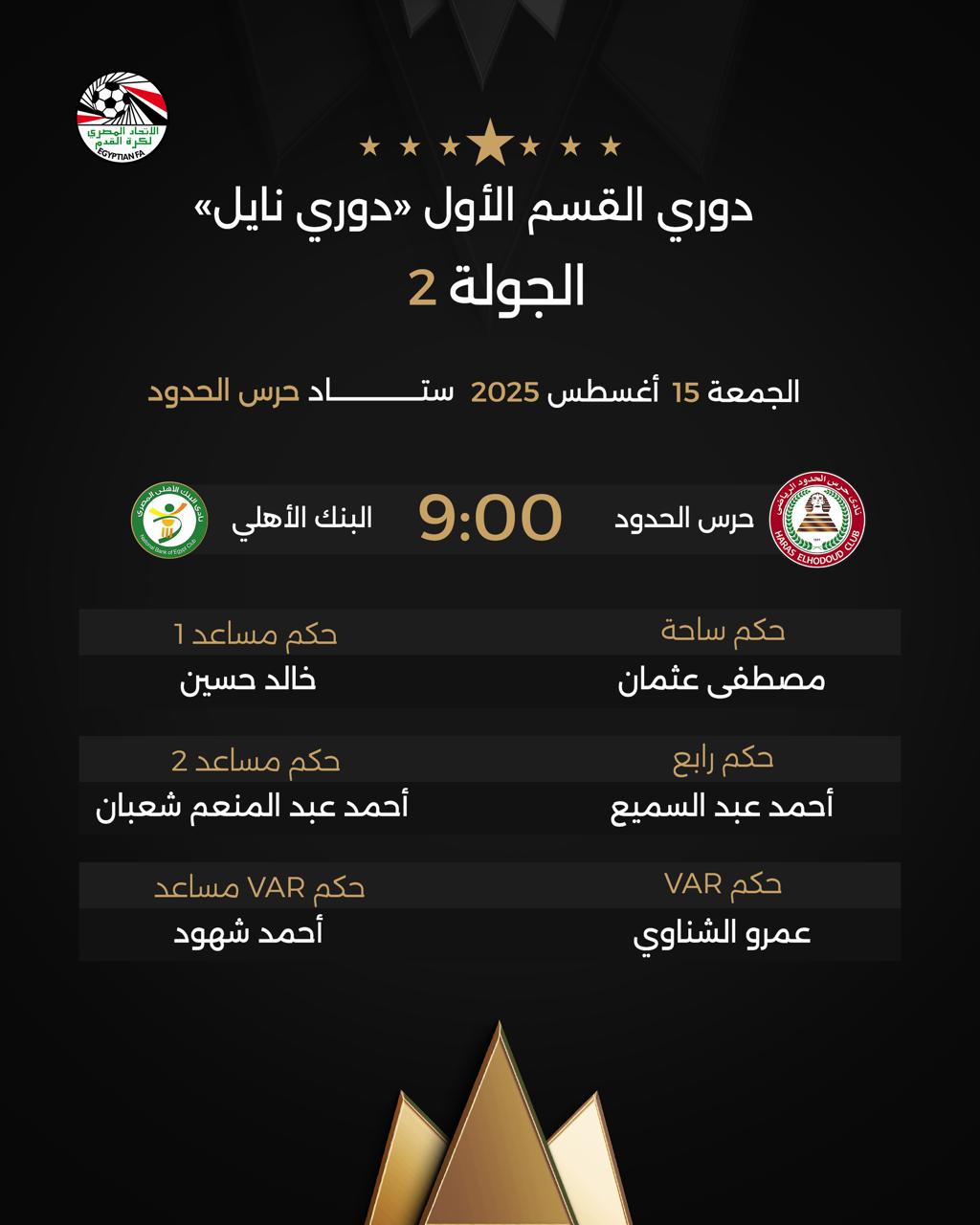 وأسندت لجنة الحكام مباراة الفريقين والتي يحتضنها ستاد حرس الحدود لـ مصطفى عثمان حكم ساحة، ويعاونه مساعدين خالد حسين وأحمد عبد المنعم شعبان، وحكم رابع أحمد عبد السميع، ويدير غرفة الفيديو عمرو الشناوي ويساعده أحمد شهود.