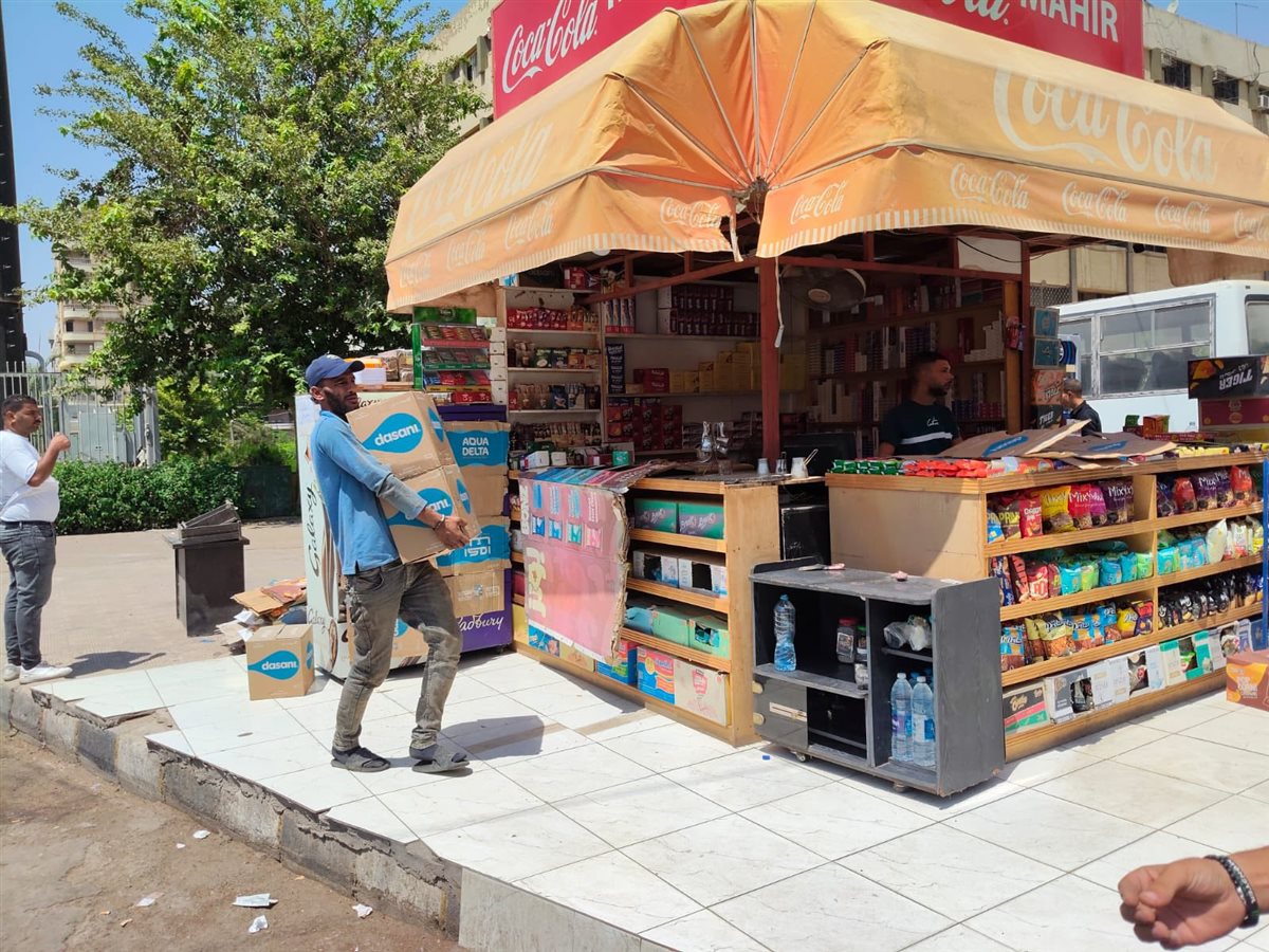 حي النزهة يواصل حملات رفع الإشغالات.. وإزالة كشك مخالف بسوق المشربية في الشيراتون