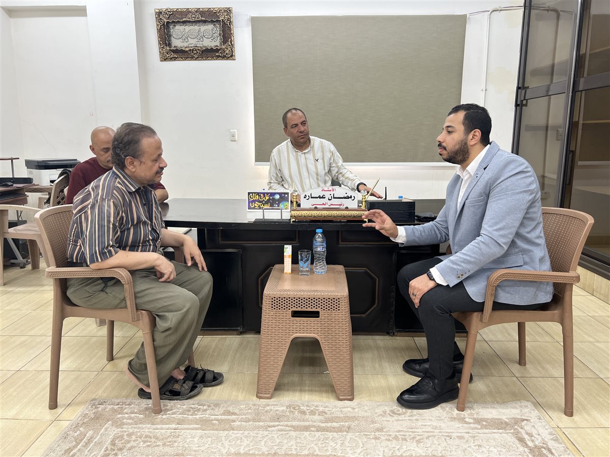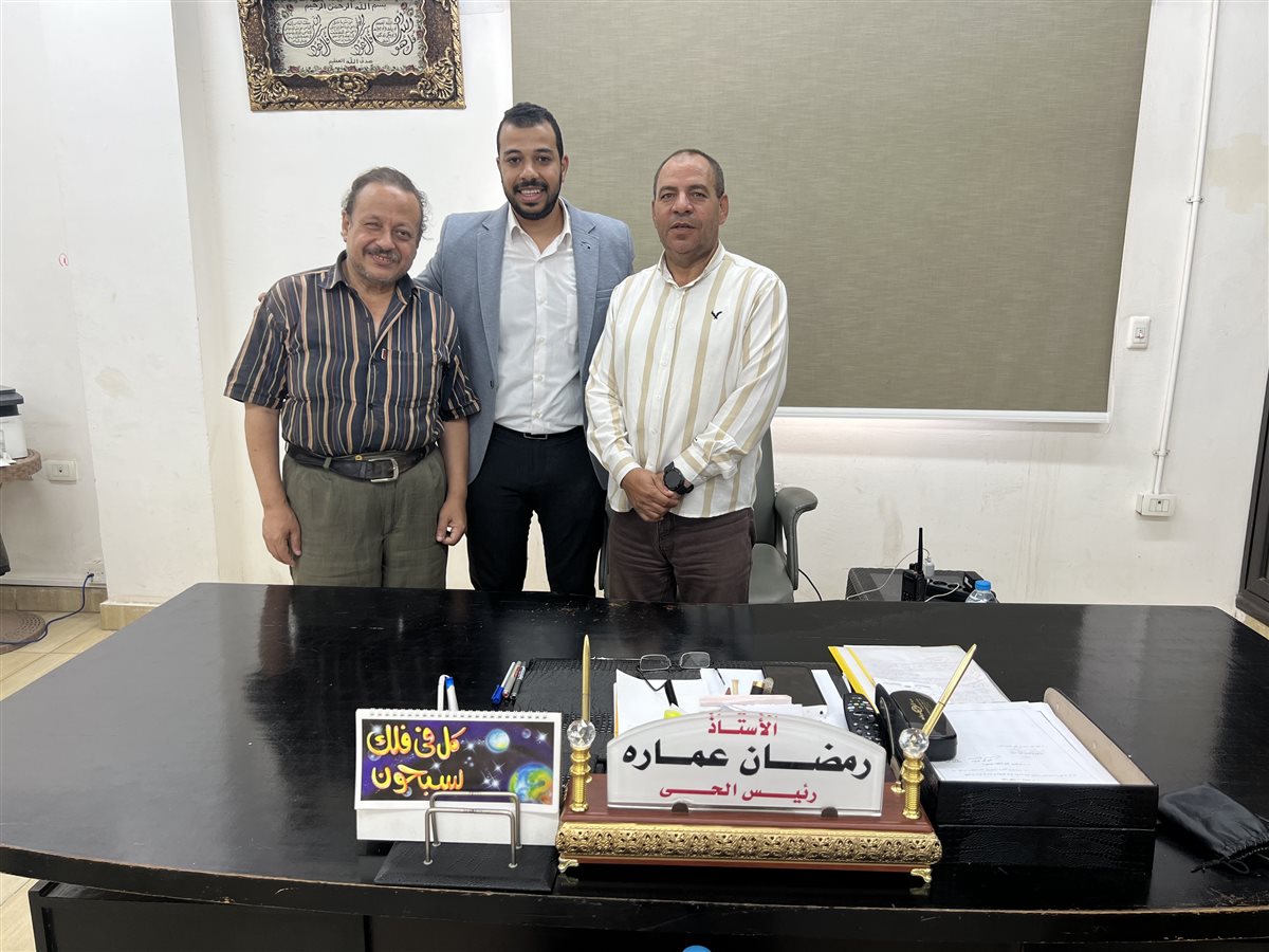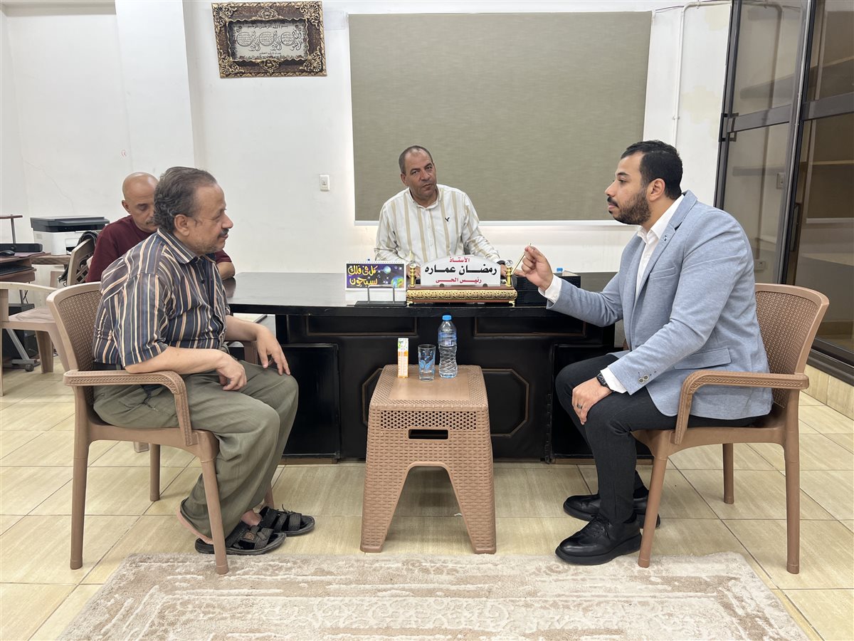 استقبل رمضان عمارة، رئيس حي المنيرة الغربية بمحافظة الجيزة، عم محمد صاحب محل البويات بإمبابة، داخل مكتبه.