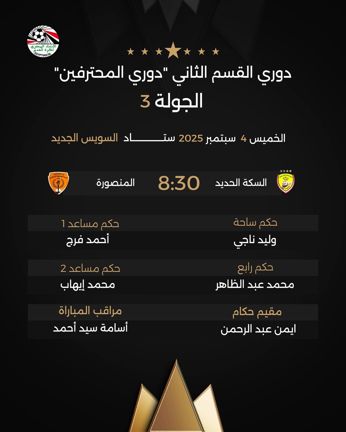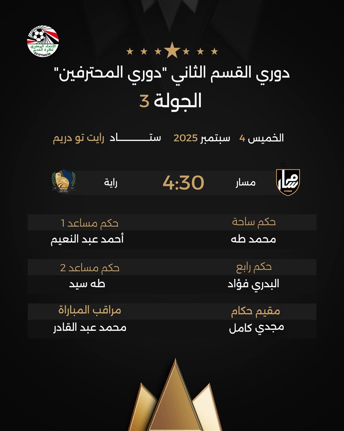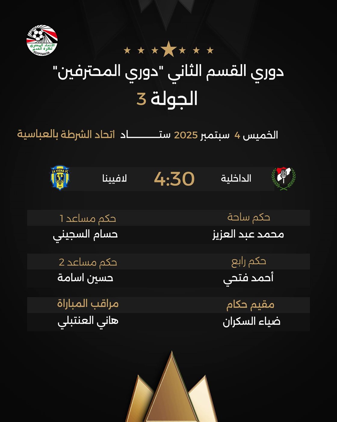 تعرف على حكام مباريات الجولة الثالثة من دوري القسم الثاني للمحترفين