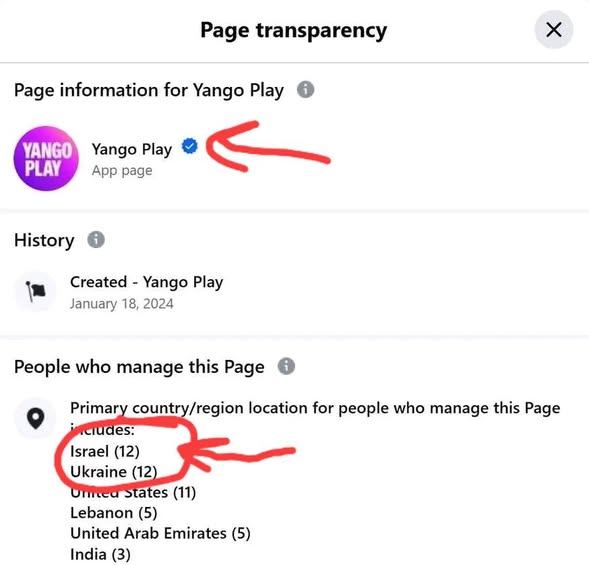 وبالبحث اليوم الموافق 4 سبتمبر 2025، تبين من خلال الصفحة الرسمية لـ يانجو بلاي عدم وجود أي أدمن أو مديرين للصفحة من إسرائيل.
