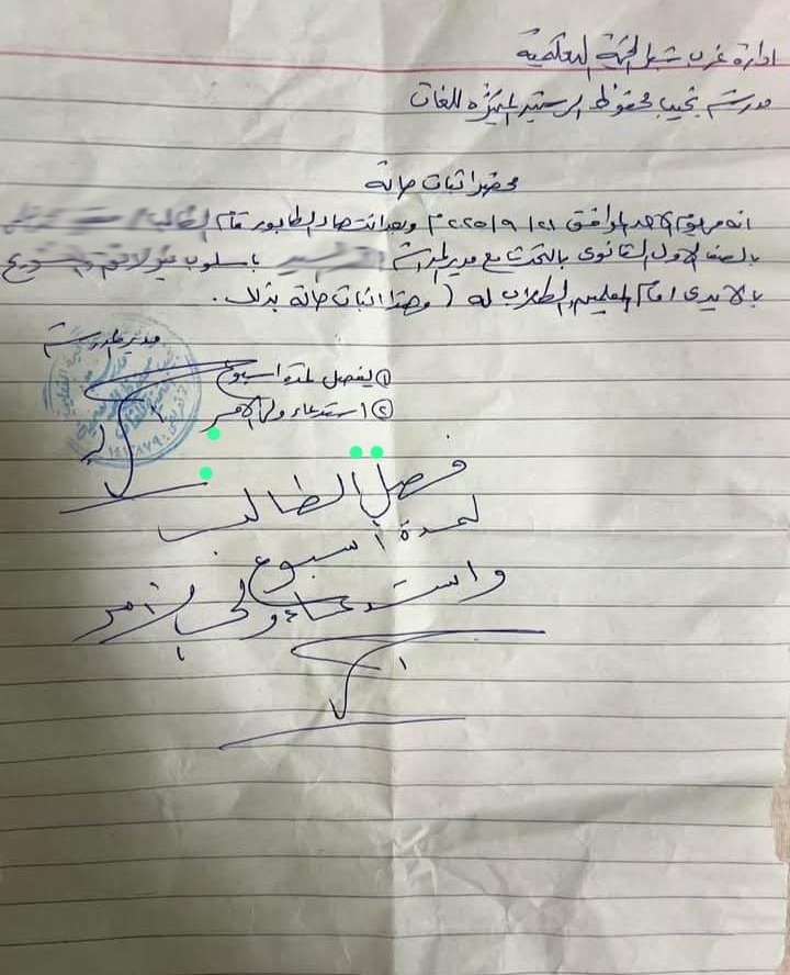 وأكدت إدارة المدرسة أن القرار يأتي في إطار الحفاظ على هيبة المؤسسة التعليمية، وترسيخ قيم الاحترام والانضباط بين الطلاب