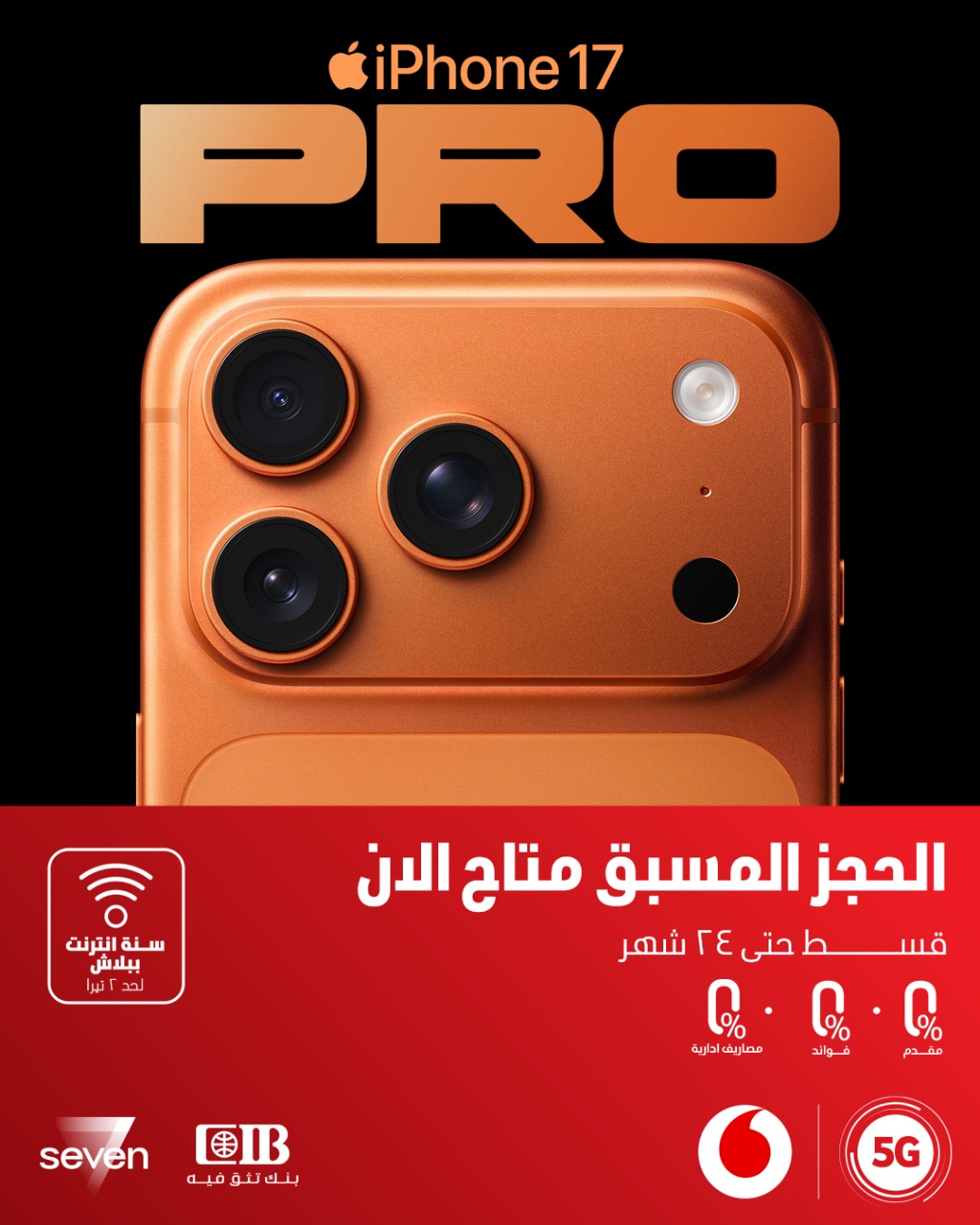وابتداءً من 19 سبتمبر، أعلنت ڤودافون مصر عن بدء مرحلة الحجز المسبق لهاتف iPhone 17 من خلال تجربة رقمية متكاملة عبر الـE-Shop، وتطبيق أنا ڤودافون، إضافة إلى جميع فروع ڤودافون في أنحاء الجمهورية، لتتيح لعملائها أن يكونوا من أوائل من يؤمنون جهازهم الجديد في مصر، مع تسليمات مميزة في 26 سبتمبر.