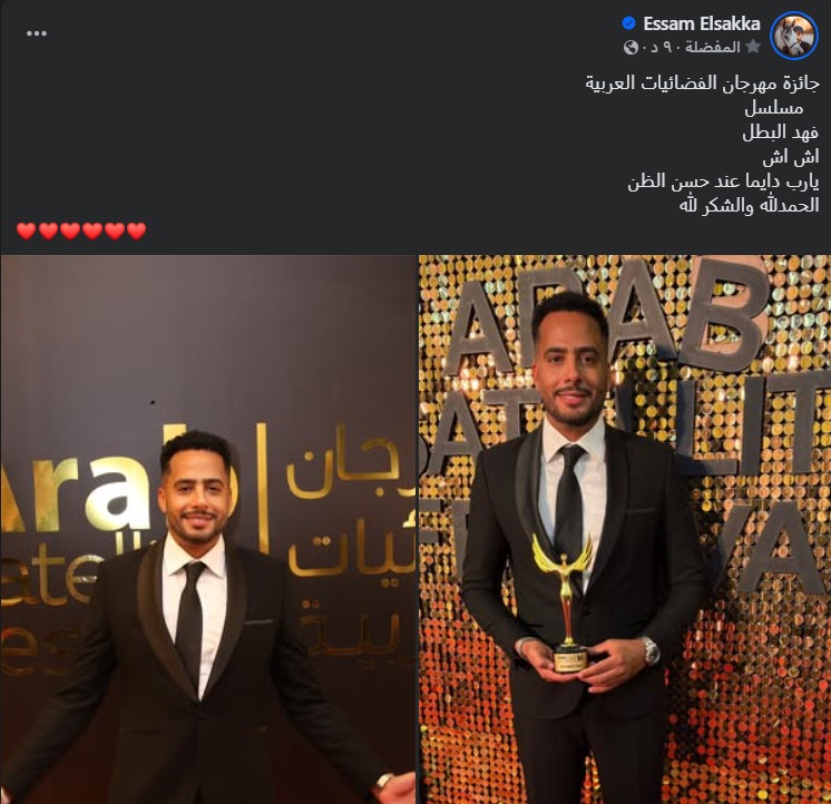 ومن جانبه، أعرب عصام عن سعادته الكبيرة بتكريمه عبر حسابه الشخصي بموقع التواصل الاجتماعي فيس بوك وقال: جائزة مهرجان الفضائيات العربية، عن مسلسل فهد البطل، وإش إش، يارب دايما عند حسن الظن.. الحمدلله والشكر لله.