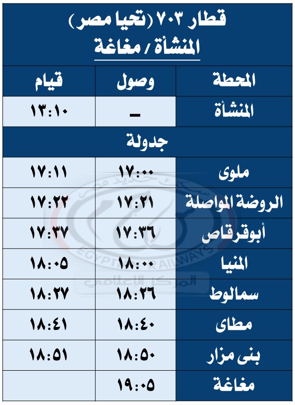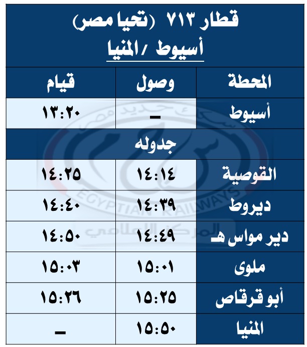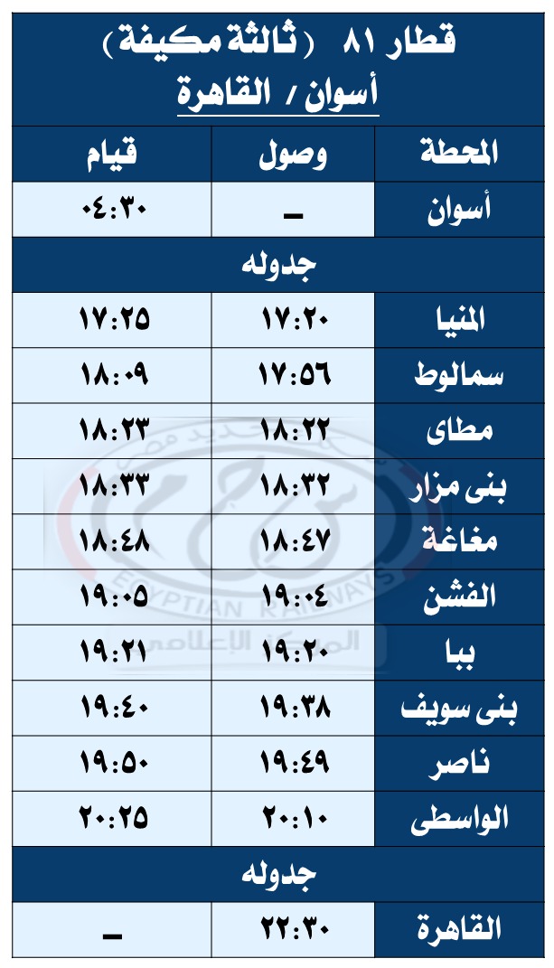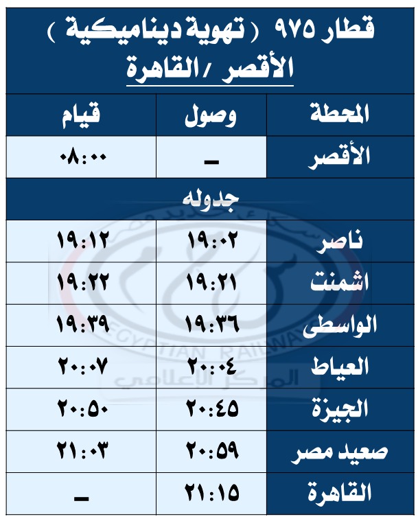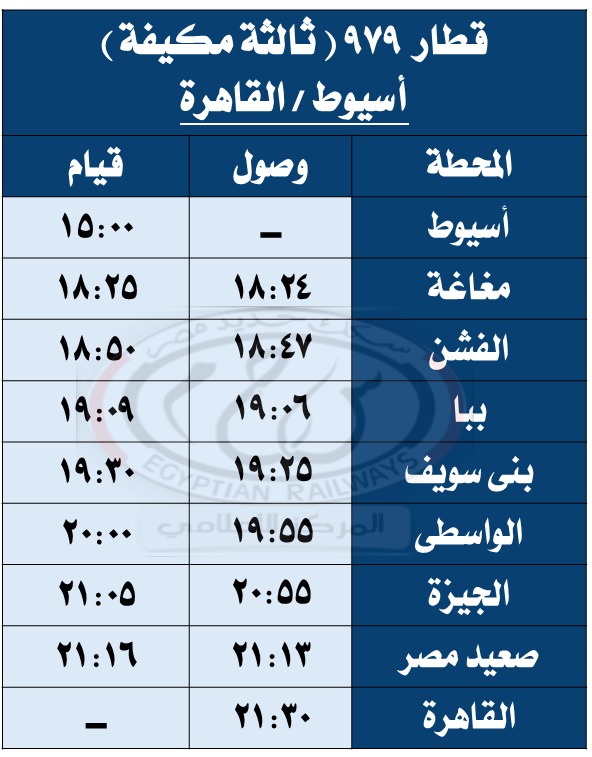 وبحسب مستند التعليمات الخاصة بالتعديلات الجديدة، فقد تقرر تعديل مواعيد القطارات أرقام ( 979 – 974 – 736 – 703 – 157 – 3018 – 713 – 153 – 159 – 978 – 944 – 975 – 81 – 4 – 31 – 3503 ) طبقًا للجداول المرفقة.