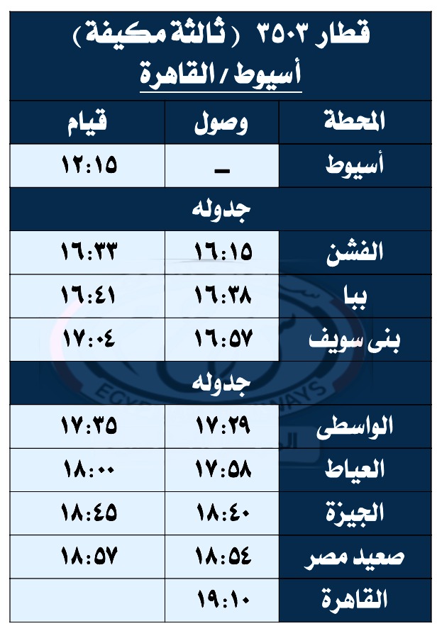 أدخلت الهيئة القومية لسكك حديد مصر، تعديلات جديدة مختلفة على مواعيد تحرك قطارات السكة الحديد الخاصة بالوجه القبلي، من خلال إضافة عربات ثانية فاخرة على خط القاهرة - أسيوط والعكس، وذلك اعتبارا من اليوم السبت الموافق 27 سبتمبر 2025.